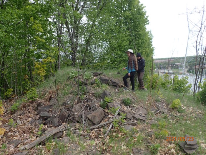 This is a bit of a break from plants and animals. Instead, we will be looking at an odd, unidentified structure my family and I stumbled across while out for a walk on May 23, 2021. At the bottom of the hill we live on, there is a trail that was formerly a railroad, but the tracks have been taken up and it was converted to a snowmobile/ATV trail. At the point where the trail crosses our road, there are concrete pylons that used to hold up a railroad bridge that crossed the creek valley.